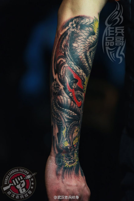 武汉最好纹身店打造的手臂穿云龙纹身作品