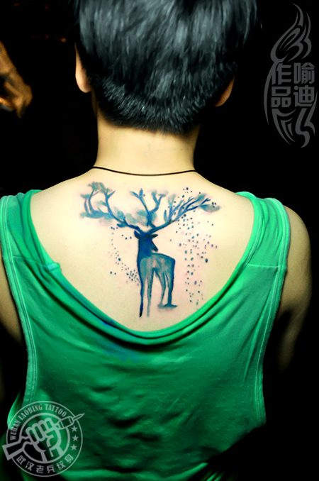 武汉最好纹身店打造的颈部水彩鹿纹身作品
