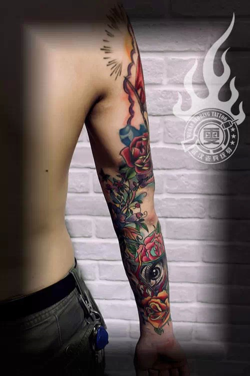 色彩女郎大臂文身作品