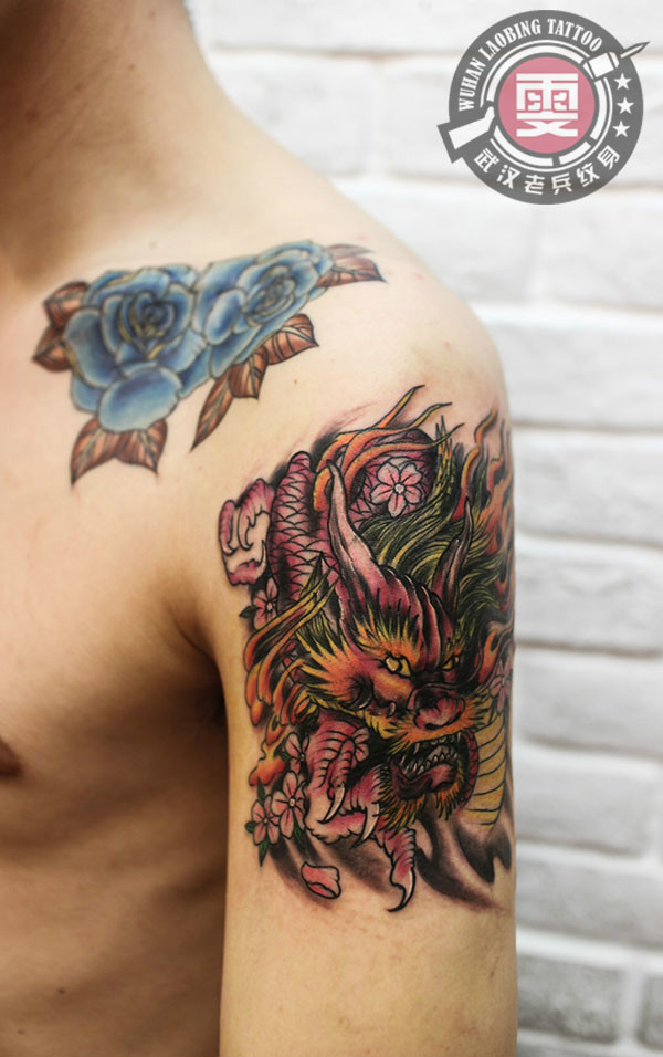 一款时尚的大臂龙纹身作品