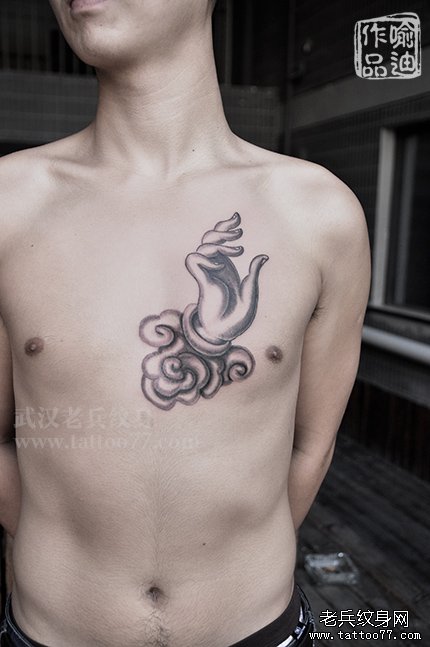 武汉最好纹身店设计打造的胸口佛手纹身作品
