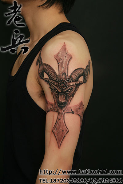 武汉纹身店:老兵纹身作品十字架羊头纹身(tattoo)