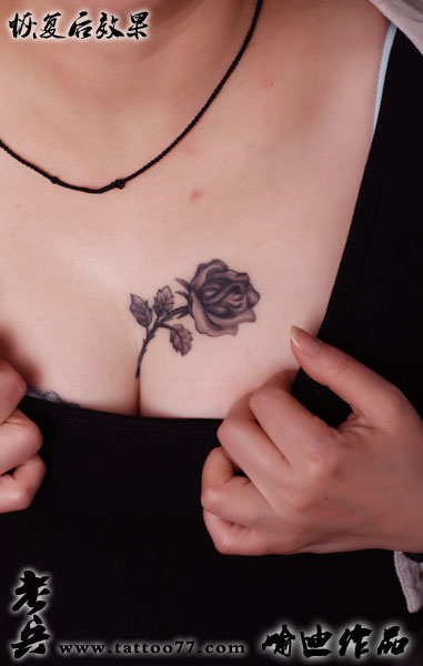 武汉纹身店:胸部玫瑰纹身恢复后效果