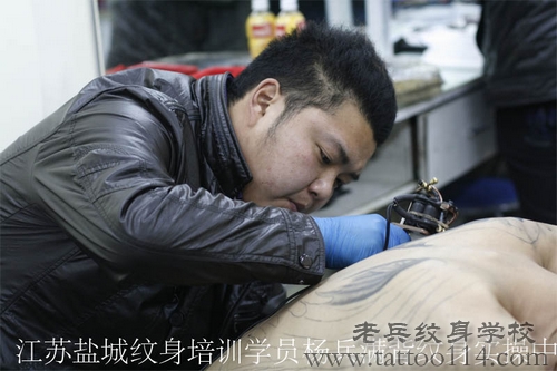 江苏盐城纹身培训学员杨兵满背纹身实操