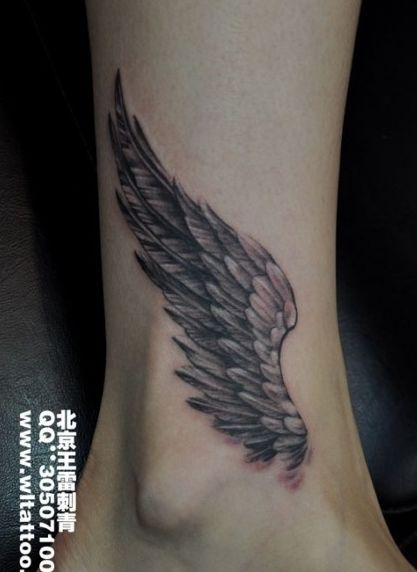 女孩子脚踝处精美的翅膀纹身图案