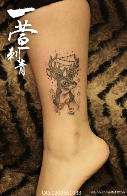 女生腿部可爱的小鹿纹身图案