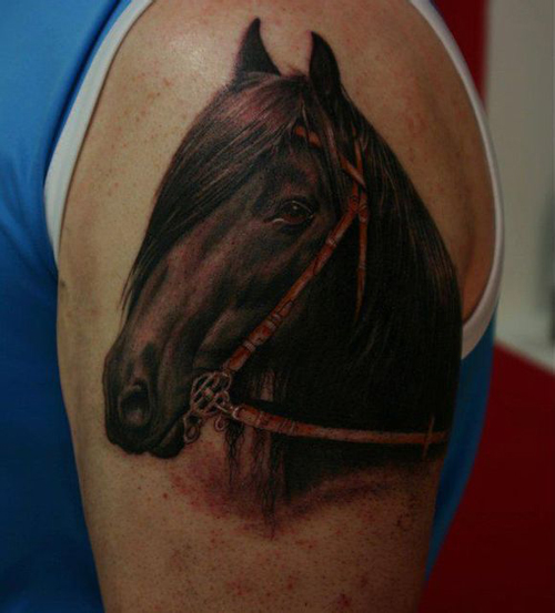 男人后背一款经典的马纹身图案