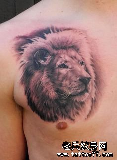 一款霸气的胸口狮子纹身图案