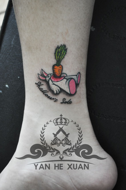 脚踝处小巧的一款小兔子纹身图案
