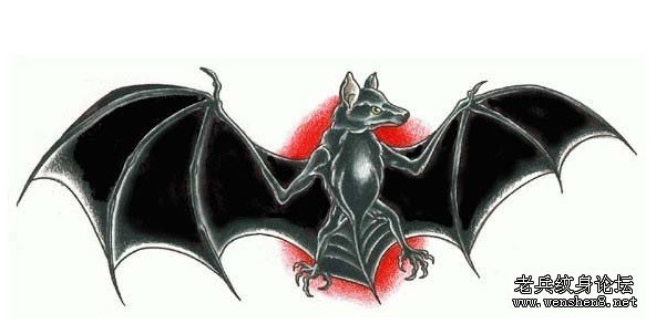 武汉纹身店为你提供一款蝙蝠纹身图案纹身图片