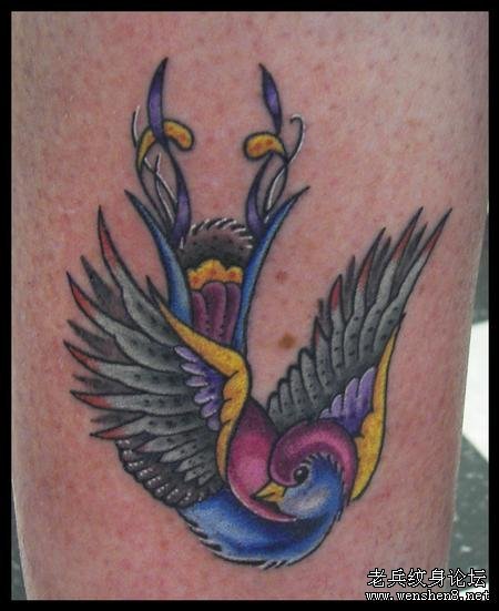 一款可爱彩色小燕子纹身图案纹身图片