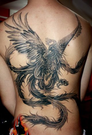 一款背部黑白的凤凰纹身图案