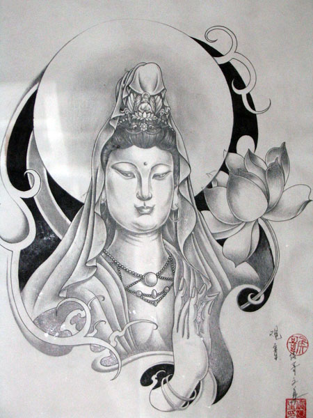 奉献一款适合做大臂或者满背的莲花观音菩萨佛纹身图案图片