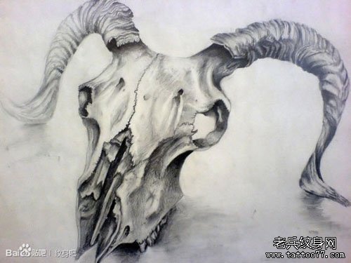 帅气超酷的一款羊头骷髅纹身图案