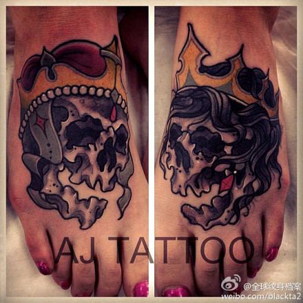 女生脚背时尚潮流的情侣骷髅纹身图案