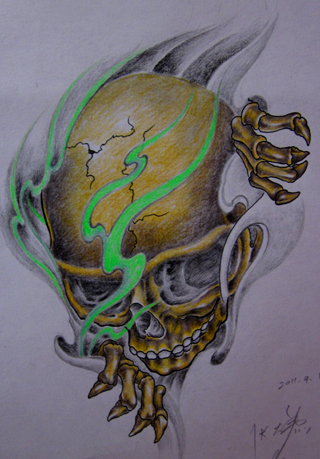 骷髅纹身图案:经典帅气彩色骷髅火焰纹身图案纹身图片