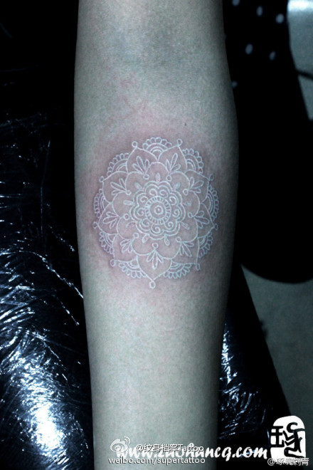 手臂漂亮精美的白色藤花纹身图案