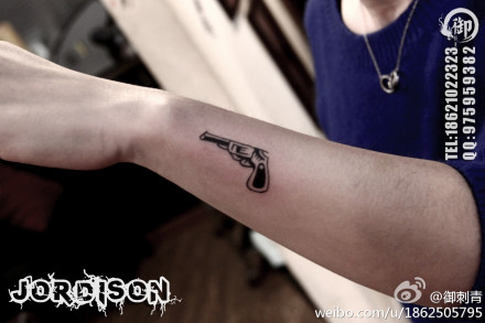 女生小手臂小巧的图腾手枪纹身图案