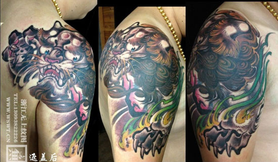 手臂很帅经典的唐狮子纹身图案