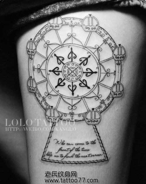 美女腿部摩天轮纹身图案