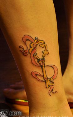 女生腿部一款流行的钥匙纹身图案