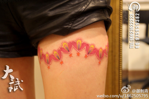女孩子大腿部时尚性感的蕾丝纹身图案