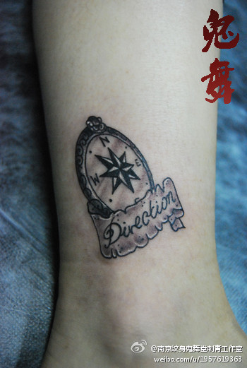 女生腿部唯美时尚的指南针纹身图案