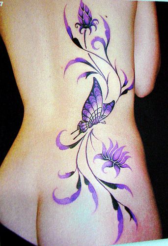 女人纹身图案:女人腰部蝴蝶花藤纹身图案
