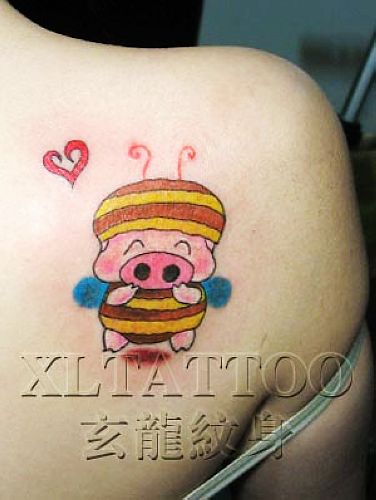 湖北随州纹身店:后背卡通猪纹身图案图片大全