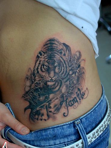 美女腰部经典的老虎纹身图案