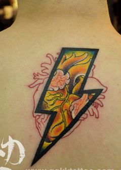 背部另类时尚的一款闪电心脏纹身图案