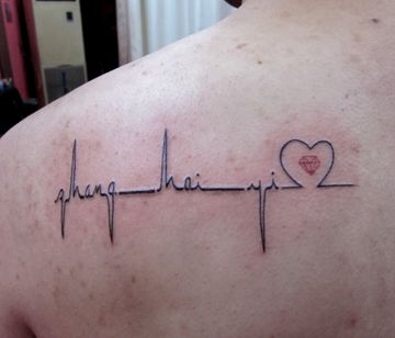肩背流行的心电图纹身图案