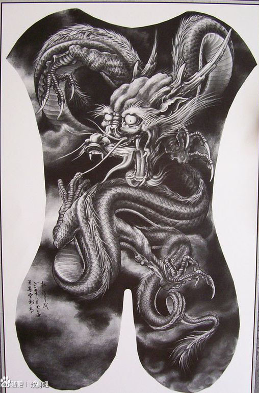 霸气超牛的满背龙纹身手稿