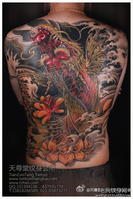 男人后背霸气超酷的满背鳌鱼纹身图案