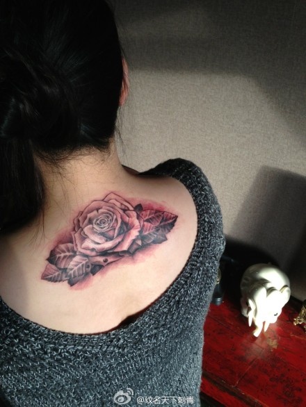 后背玫瑰纹身图案