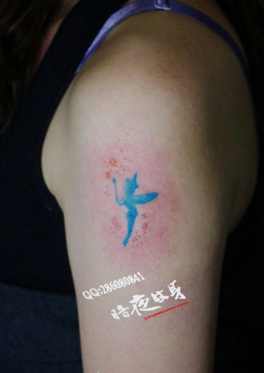 女生手臂小巧可爱的彩色小精灵纹身图案