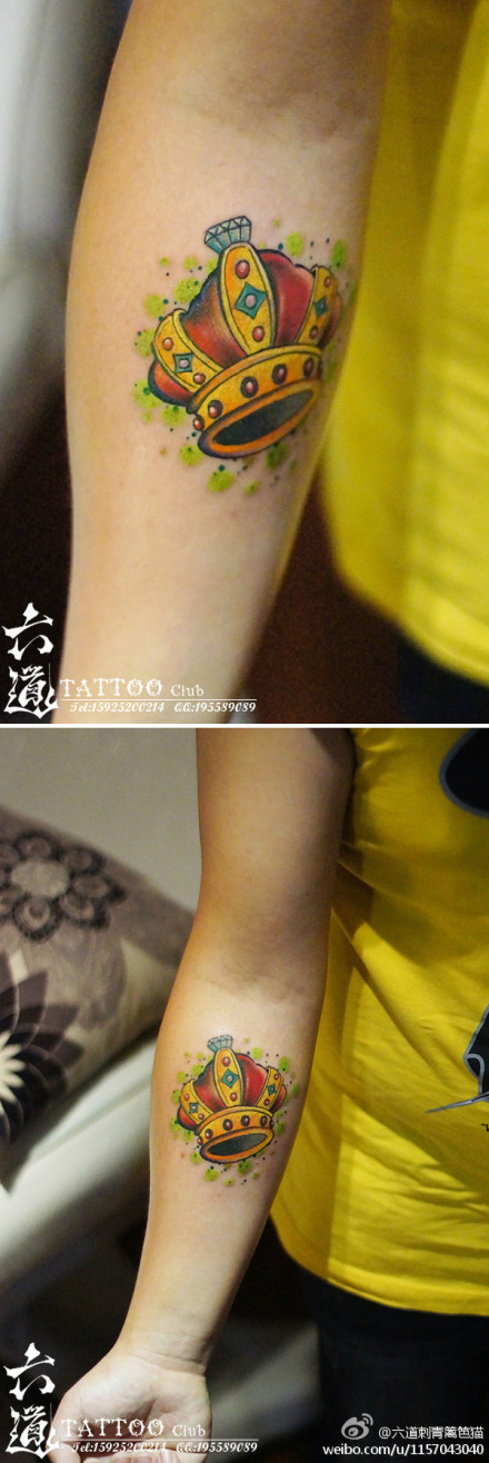 女生手臂漂亮潮流的彩色皇冠纹身图案