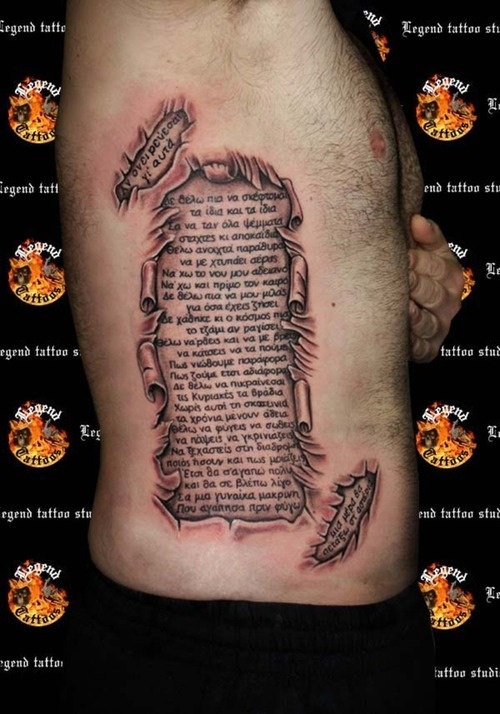 推荐一款霸气的侧腰撕皮文字纹身图案