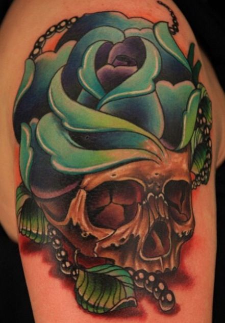 分享一款潮流经典的玫瑰骷髅纹身图案