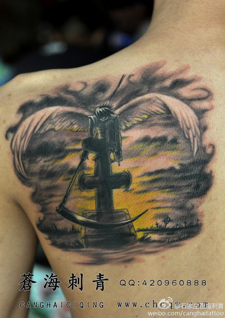 肩背时尚潮流的一款卡通死神纹身图案 申明:此图案是为了提供给纹身爱好者欣赏,图片均来自互联网如有异议,请联系本站 查看更多死神纹身图案请登陆武汉专业纹身店老兵刺青网 http://www.tattoo77.com/