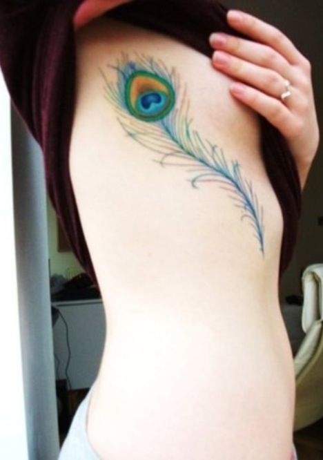 美女侧腰一款时尚唯美的羽毛纹身图案