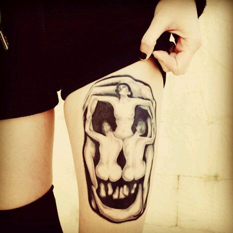 推荐一款潮流时尚的大腿骷髅纹身图案