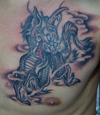麒麟纹身:胸部神兽貔貅纹身图案纹身图片