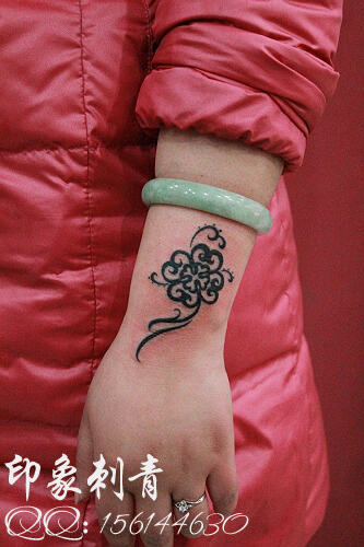 女生手腕好看流行的图腾四叶草纹身图案
