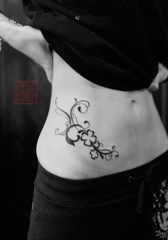 美女腹部时尚唯美的图腾四叶草纹身图案