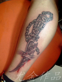 腿部纹身图案大全:腿部刀纹身图案图片