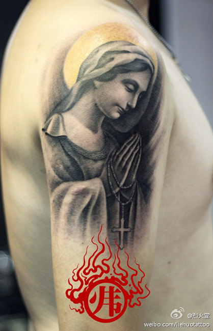 手臂潮流经典的圣母肖像纹身图案