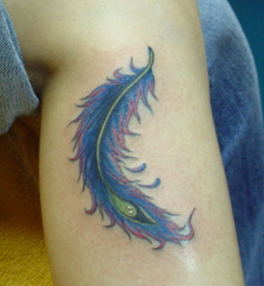 武汉最好的刺青店:腿部羽毛文身图案图片大全