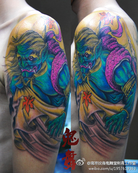 手臂一款超酷的风神纹身图案