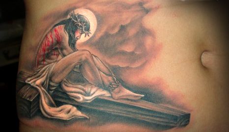 腹部纹身:腹部耶稣十字架纹身图案纹身图片